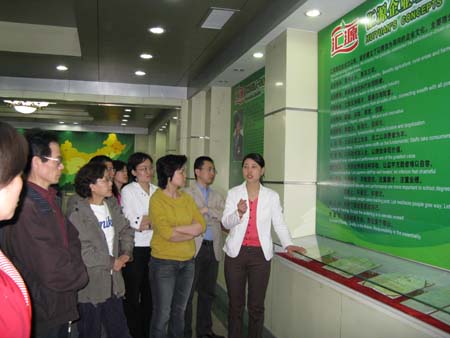 在工厂导游的引导下,教职工们参观了这两个花园式工厂。沿着工厂精心设计的参观路线,可以看到企业干净、明亮的生产车间,整个车间由电脑自动化控制,有效地节约了劳动力。偌大的工厂,看不到几个工人,数量不多的工人也没有从事繁重的体力活儿,只是在时时检查仪表及观察机器运转情况,抽检产品质量等等。参观过程中,老师们对企业的创业发展史、企业荣誉、环保理念、企业所取得的成绩等发出了由衷的赞叹,深刻感受到改革开放30年来我国企业所发生的巨大变化。并不时地与导游就自己所关心的问题如企业品牌营销、产品销售渠道创新、新产品开发、国际市场开发等话题进行了充分交流,也对现代工业在解决农村剩余劳动力就业等方面提出了自己的看法。
