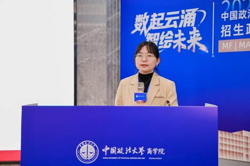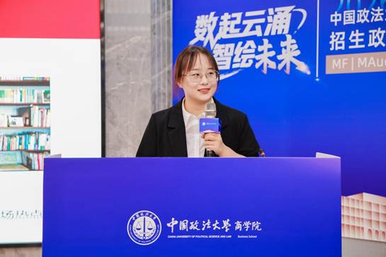 国际商务专硕优秀校友赵碧璇带来《从谈判赛场到职场舞台:法大国商赋予我成长力量》的主题演讲,分享了她的学习与职业经历。2021年她因参与“中财杯”未来国际商务谈判精英全国赛与法大结缘,2023年又代表法大国商谈判队出战第三届MIB国际商务谈判大赛,在实战中锤炼的谈判技巧与团队协作能力,成为其职场的宝贵财富。她认为,国际商务的专业培养给予了纵向扎根的学习能力,商院的丰富活动则培养了横向发展的综合素养,并诚挚邀请大家报考法大国际商务硕士,携手奔赴更好的星辰大海。