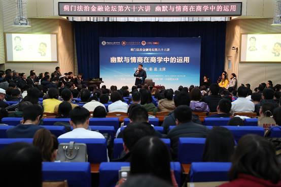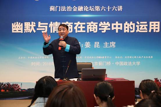 学院路校区学术报告厅精彩开讲。本次论坛特邀中国曲艺家协会主席、国家一级演员、著名相声表演艺术家姜昆主讲《幽默与情商在商学中的运用》,为法大师生带来一场艺术与商学结合的饕餮盛宴。国家创新与发展战略研究会副会长、原总参四部副部长郝叶力,原全国政协新闻局副局长张海霞,品牌联盟(北京)咨询股份公司董事长王永,含羞草