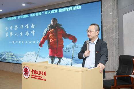 Host Wang Yanyi teacher delivered the opening speech, to introduce today's interview guest Mr. Xia Boyu, in the case of amputation of lower limbs due to severe frostbite, did not give up the dream of climbing Mount Everest, with a tenacious determination to use prosthetics for climbing rehabilitation training, finally in 2018 at the age of 69, to achieve the dream of climbing Mount Everest, becoming the first person without legs. Teacher Wang stressed that this activity is not only a profound ideological and political education lesson, but also an important measure to implement the spirit of the central government and implement the outline of education and power planning.