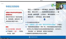 At the beginning of the lecture, Professor Cai Li explained the difference between professional degree thesis and academic degree thesis. Based on the data from 2015 to 2021 of Southwest University of Finance and Economics, she analyzed that most of the students chose to do case studies in the past. Based on the case study, Professor Cai Li explained the difference between the professional master and the academic master and proposed three requirements for the topic selection: First, be familiar with the literature in a certain field and make innovations based on it; Second, possess certain original creativity; Three should "stand up to heaven" (There should be theoretical or conceptual breakthroughs and based on facts).
