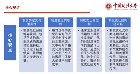 本次同学们的研讨内容主要分为四部分。第一部分对本文的作者、中心思想与写作背景进行了概述;第二部分专注于本书的核心理论,主要介绍了制度的基础理论和交易费用的理论;第三部分着重描述了制度变迁的路线以及稳定性;第四部分围绕经济历史绩效与制度之间的复杂关系进行了发散与思考。