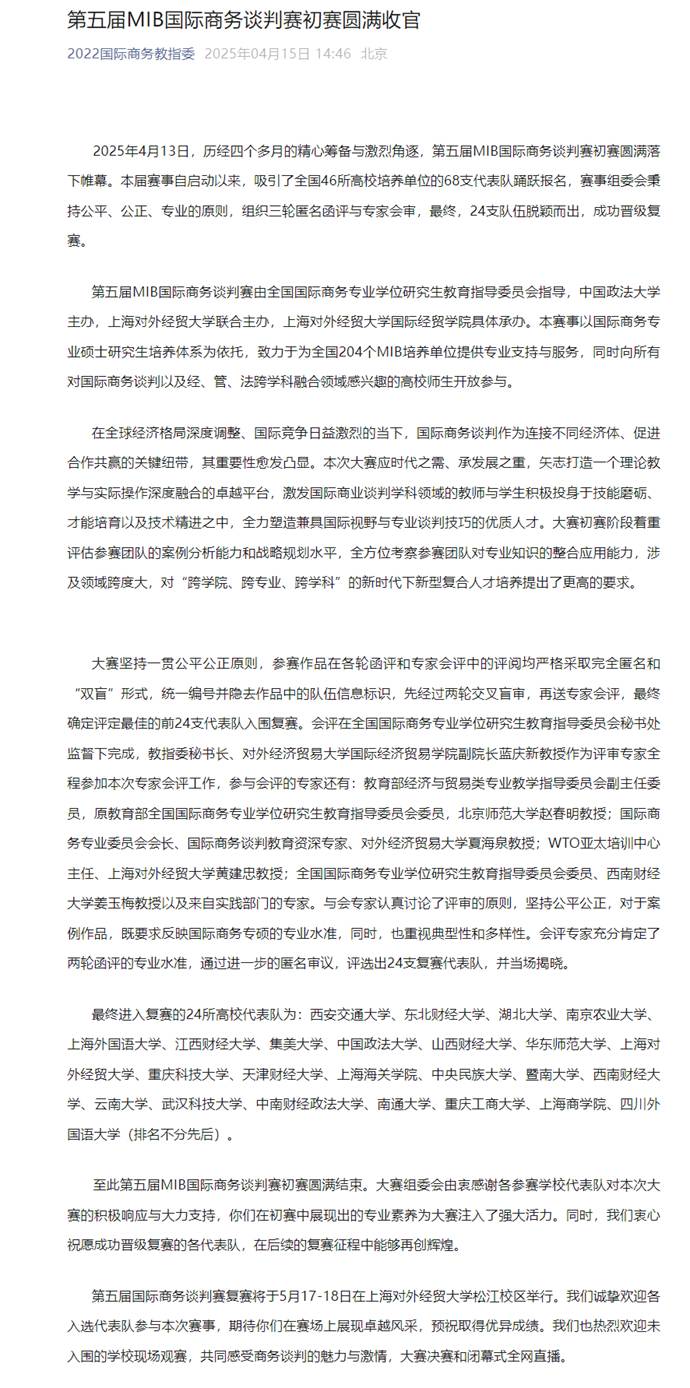 图2 第五届MIB国际商务谈判赛复赛名单公布