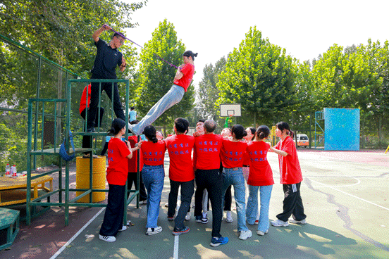 高空项目"背摔"让同学们深切体会到信任与责任的双向力量。每一次勇敢的后仰,不仅是将自我托付给团队,也更坚定了彼此之间的信赖。这种源于协作的默契,成为团队凝聚与发展的坚实基石。